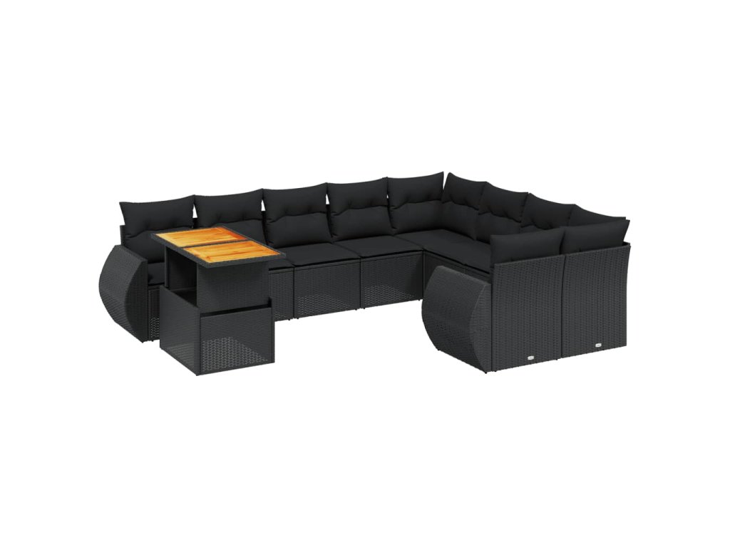 10dílná zahradní sedací souprava s poduškami černá polyratan 3272357