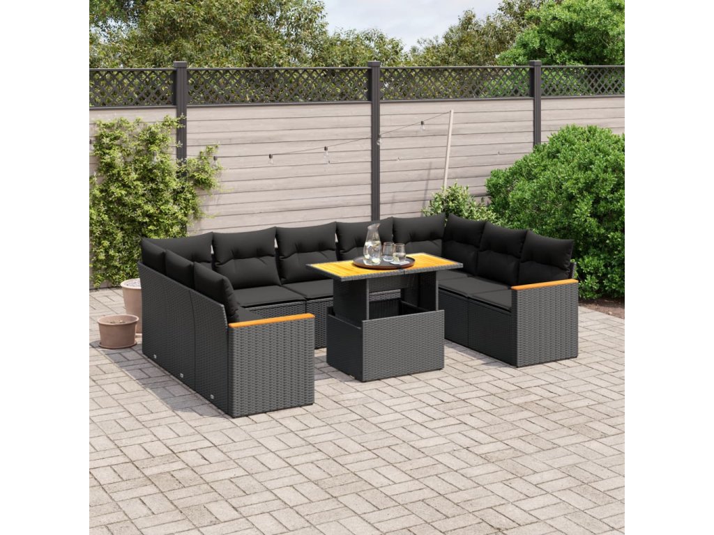 10dílná zahradní sedací souprava s poduškami černá polyratan 3273218