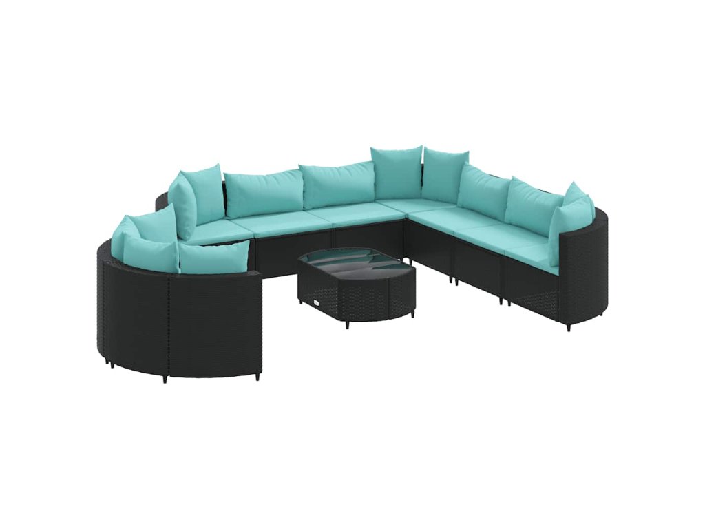 10dílná zahradní sedací souprava s poduškami černá polyratan 3308412