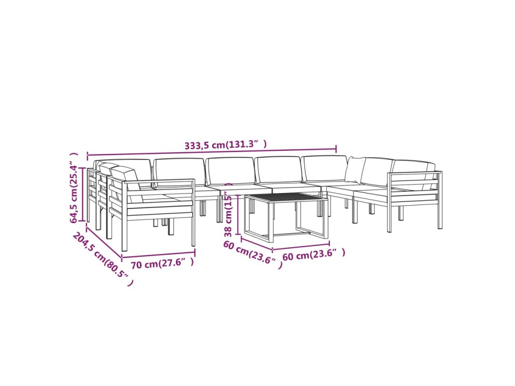 10dílná zahradní sedací souprava s poduškami hliník antracitová 3107815