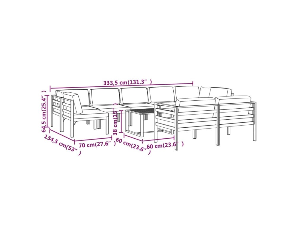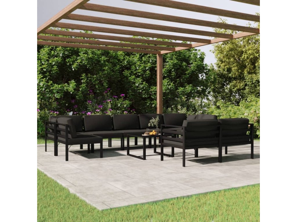 10dílná zahradní sedací souprava s poduškami hliník antracitová 3107819