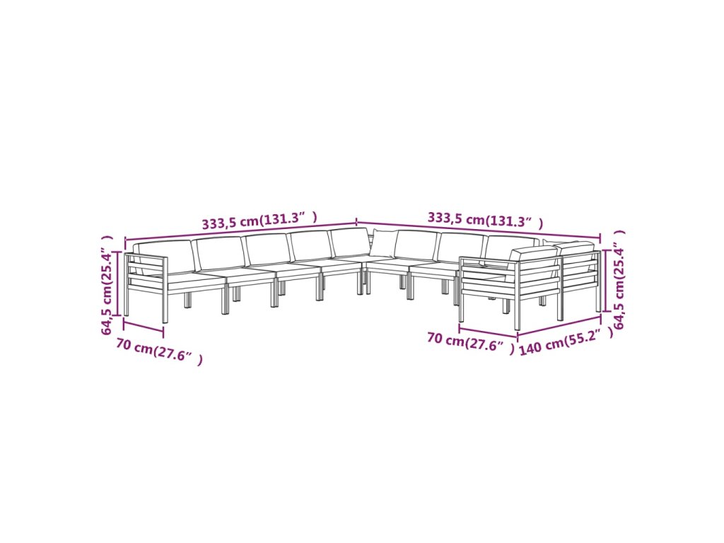 10dílná zahradní sedací souprava s poduškami hliník antracitová 3107827