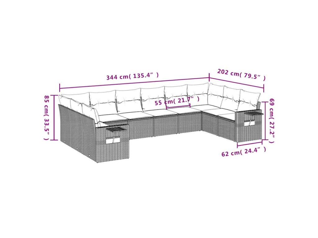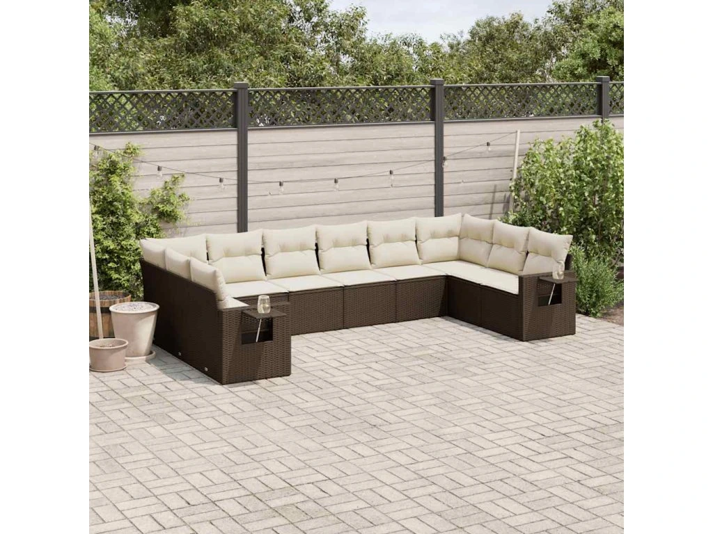10dílná zahradní sedací souprava s poduškami hnědá polyratan 3220672
