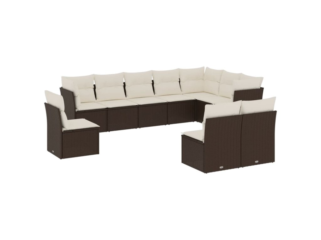 10dílná zahradní sedací souprava s poduškami hnědá polyratan 3249642