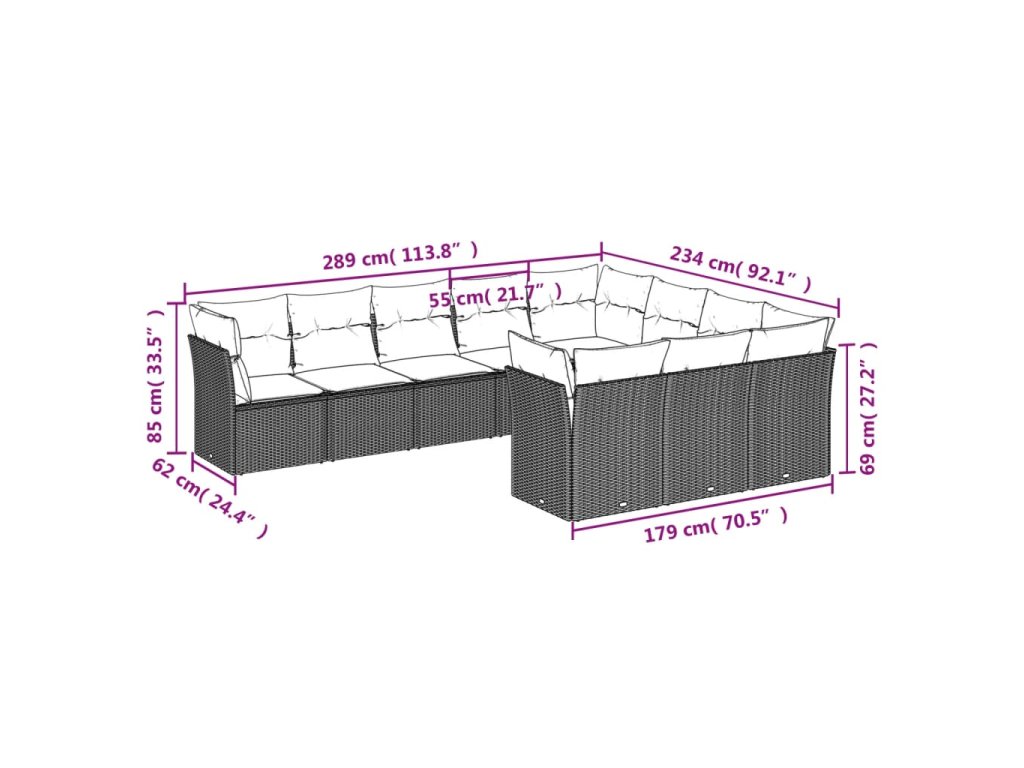 10dílná zahradní sedací souprava s poduškami hnědá polyratan 3250062