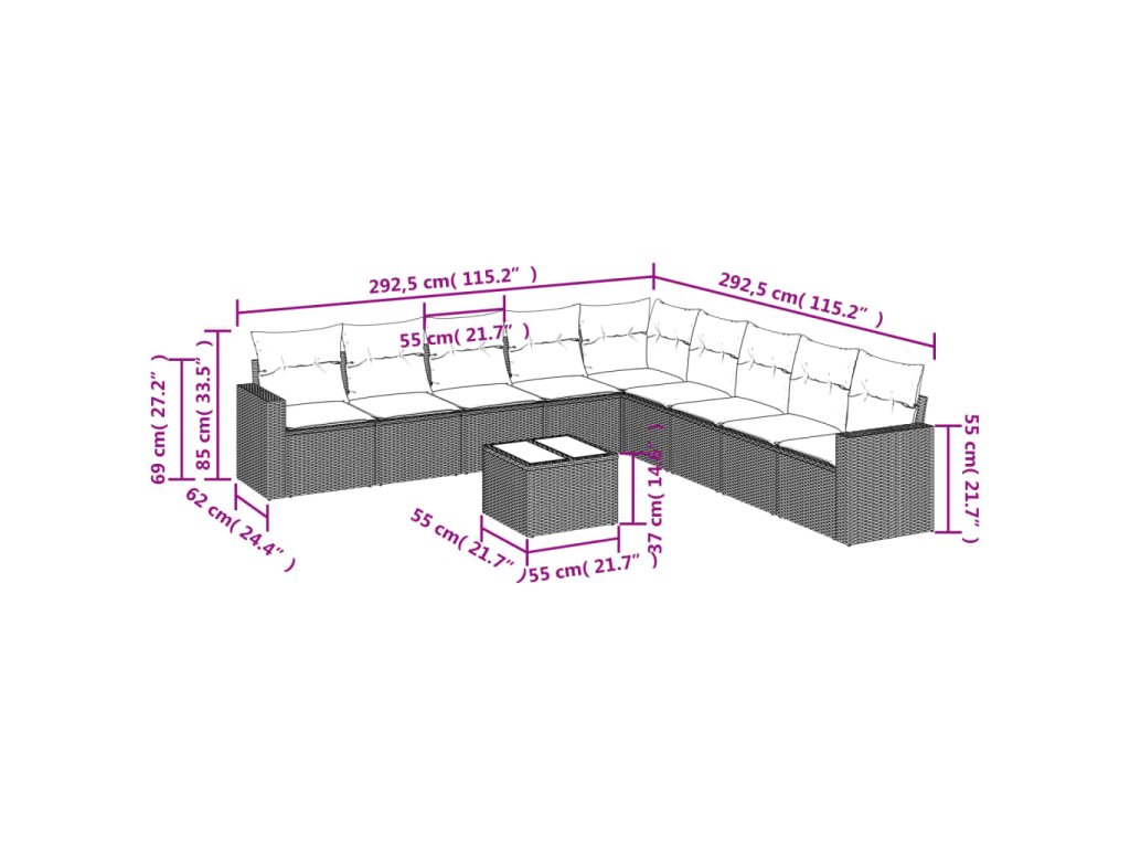 10dílná zahradní sedací souprava s poduškami hnědá polyratan 3251440