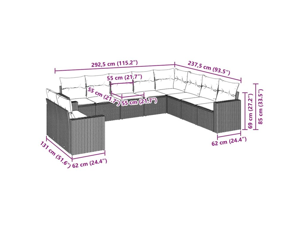 Tato zahradní sedací souprava je dokonalým doplňkem vaší zahrady, terasy nebo dvorku a poskytne vám pohodlné a příjemné místo, kde si můžete povídat s rodinou a přáteli nebo jen tak odpočívat a užívat si pobyt venku.
