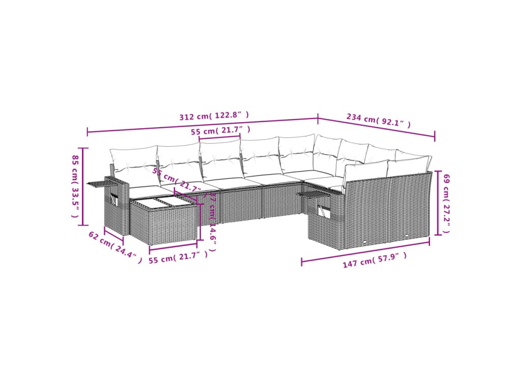 Tato zahradní sedací souprava je dokonalým doplňkem vaší zahrady, terasy nebo dvorku a poskytne vám pohodlné a příjemné místo, kde si můžete povídat s rodinou a přáteli nebo jen tak odpočívat a užívat si pobyt venku.