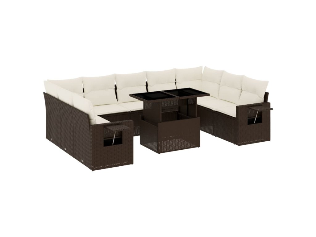 10dílná zahradní sedací souprava s poduškami hnědá polyratan 3268113