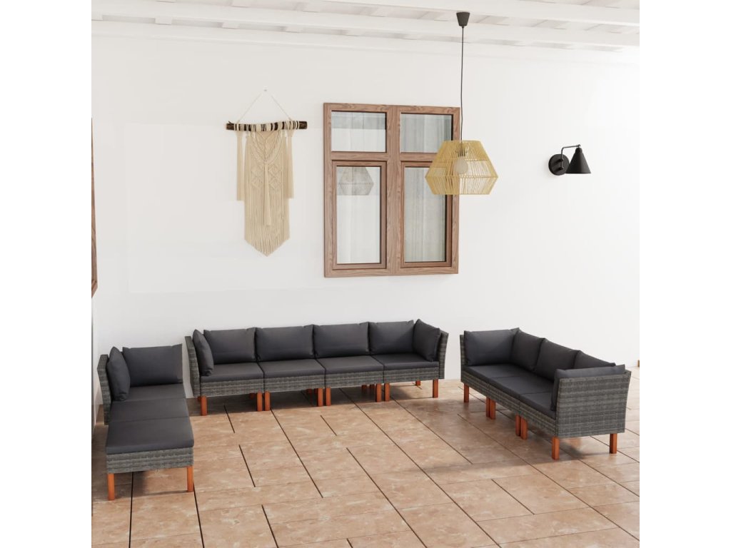 10dílná zahradní sedací souprava s poduškami polyratan šedá 3059723