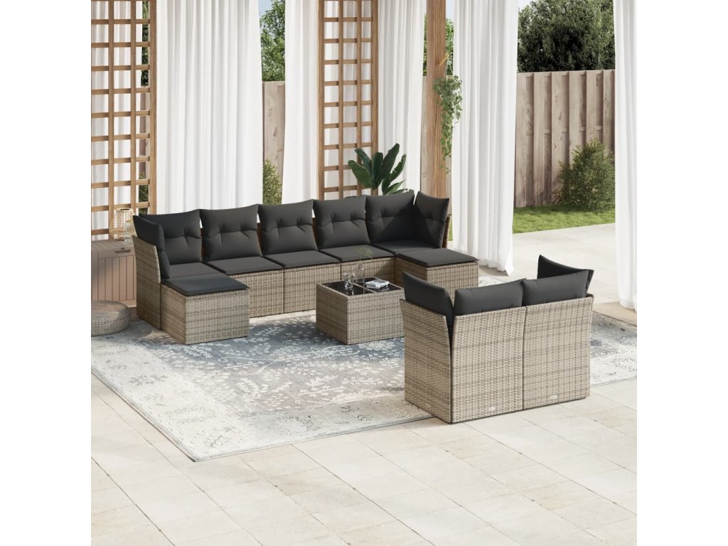 10dílná zahradní sedací souprava s poduškami šedá polyratan 3218320
