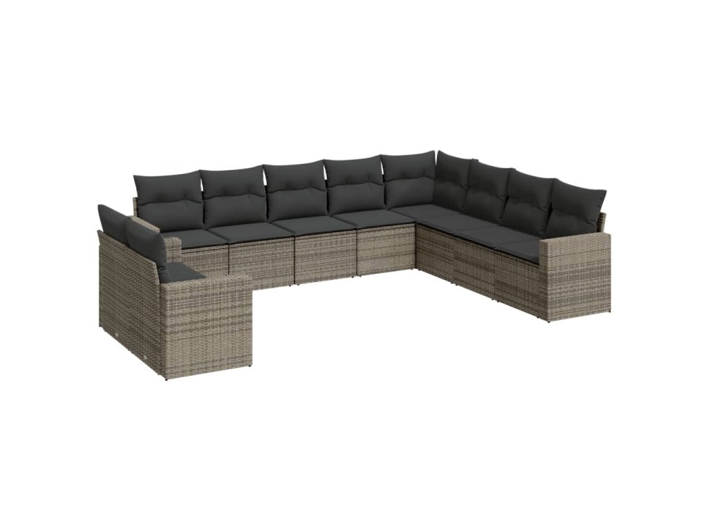 10dílná zahradní sedací souprava s poduškami šedá polyratan 3219160