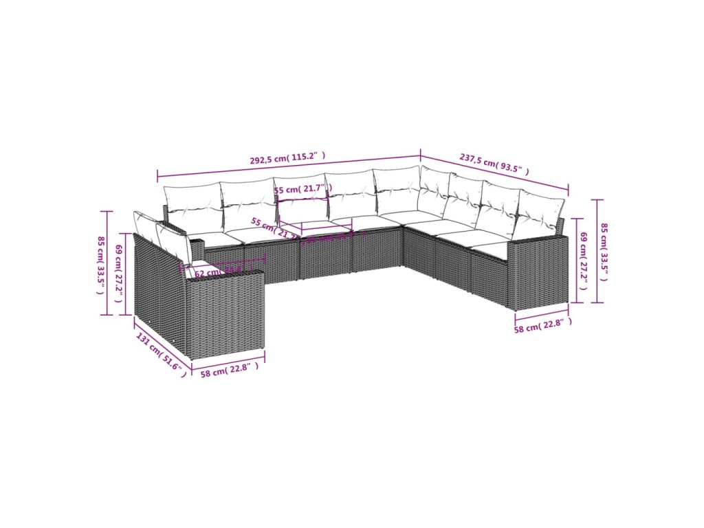 Tato zahradní sedací souprava je dokonalým doplňkem vaší zahrady, terasy nebo dvorku a poskytne vám pohodlné a příjemné místo, kde si můžete povídat s rodinou a přáteli nebo jen tak odpočívat a užívat si pobyt venku.