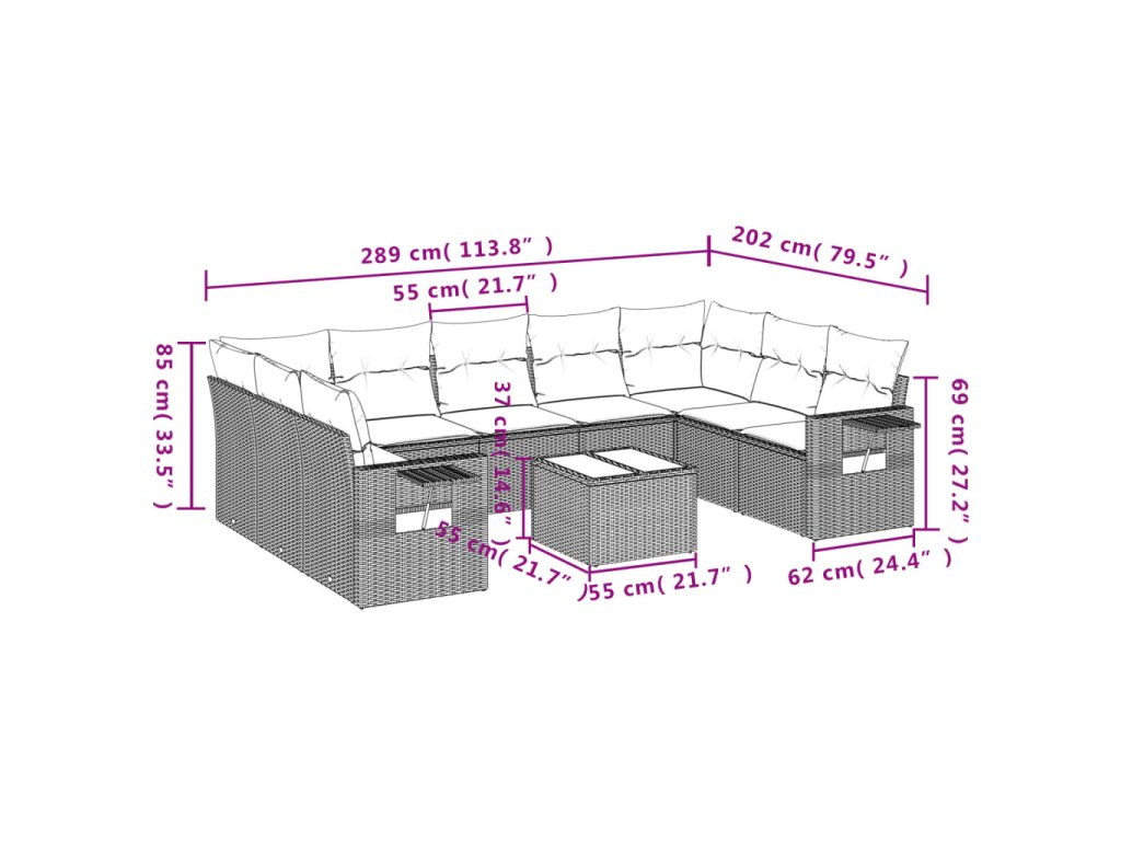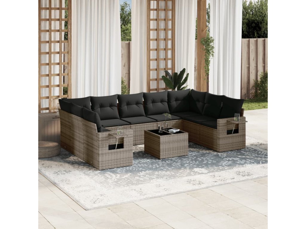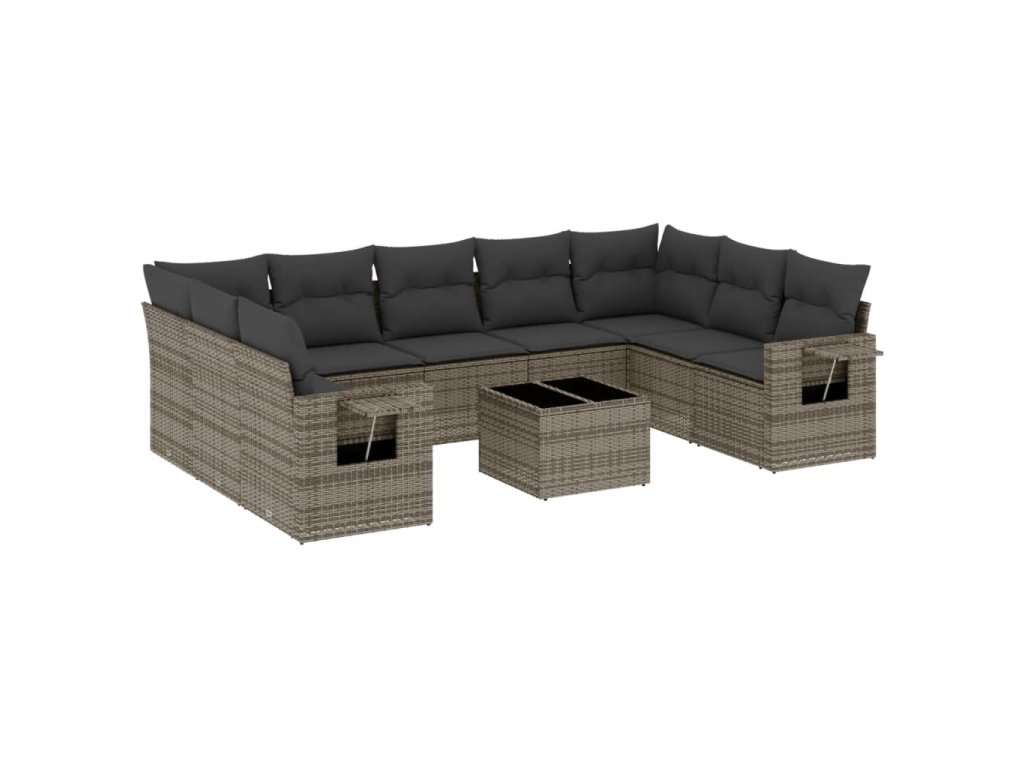 10dílná zahradní sedací souprava s poduškami šedá polyratan 3220609
