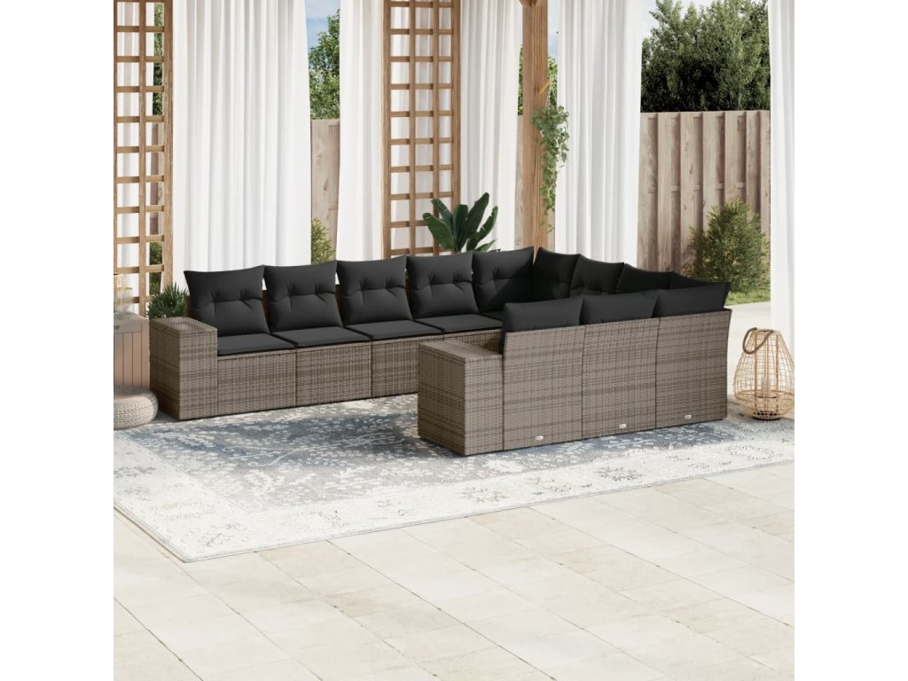 10dílná zahradní sedací souprava s poduškami šedá polyratan 3223089