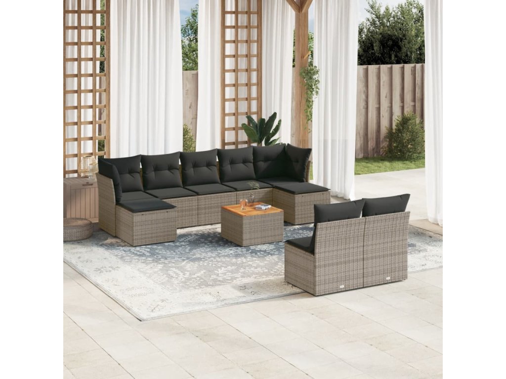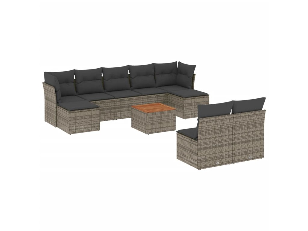 10dílná zahradní sedací souprava s poduškami šedá polyratan 3223862