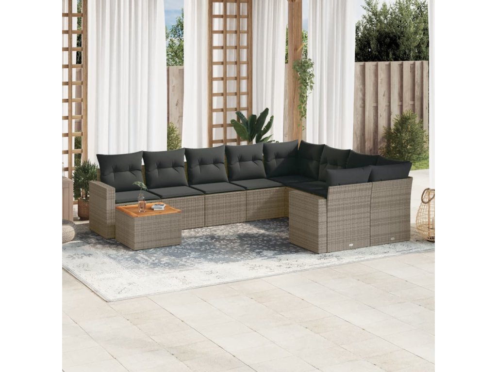 10dílná zahradní sedací souprava s poduškami šedá polyratan 3224289
