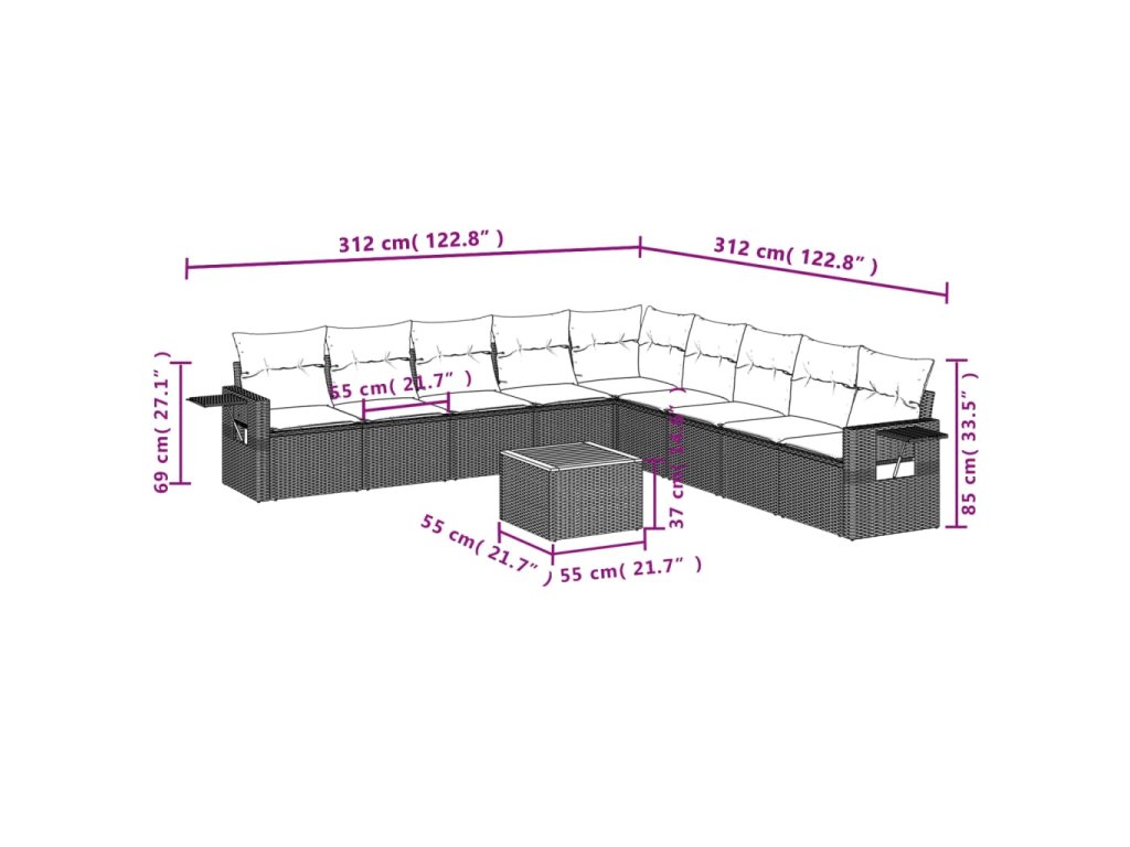10dílná zahradní sedací souprava s poduškami šedá polyratan 3224611