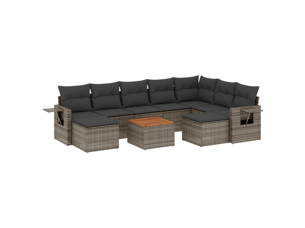 10dílná zahradní sedací souprava s poduškami šedá polyratan 3224849
