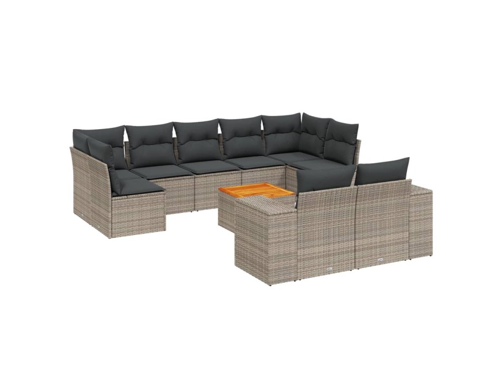 10dílná zahradní sedací souprava s poduškami šedá polyratan 3225598