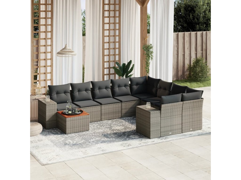 10dílná zahradní sedací souprava s poduškami šedá polyratan 3225612