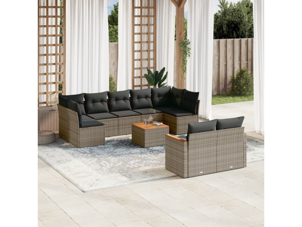 10dílná zahradní sedací souprava s poduškami šedá polyratan 3226298