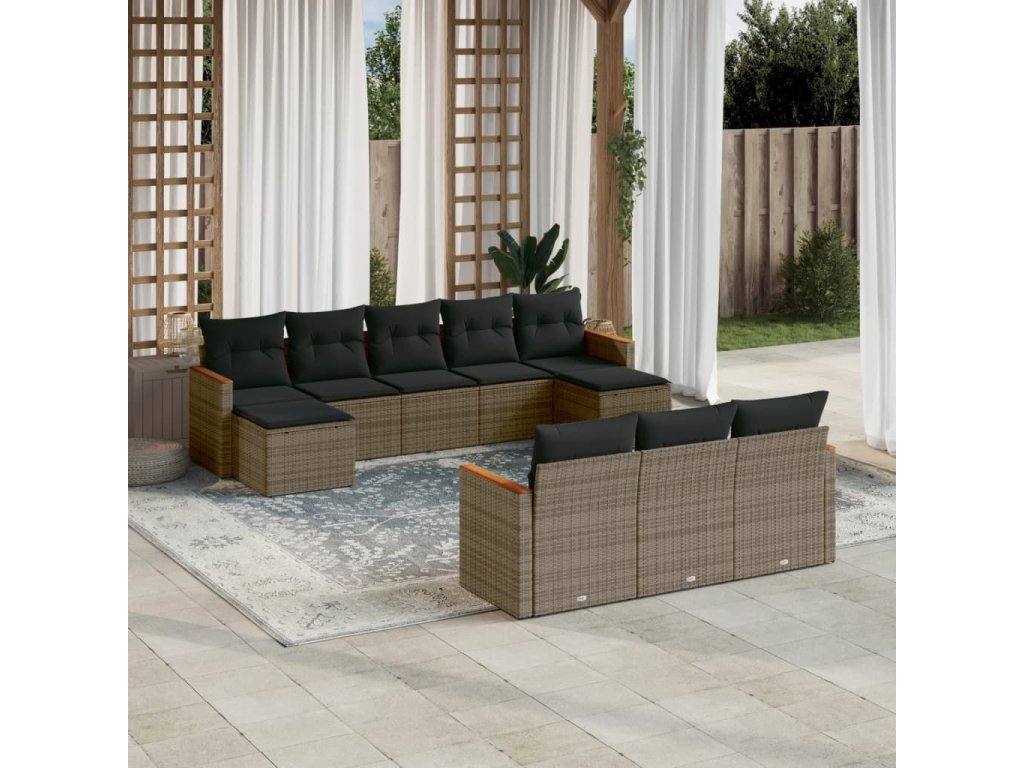 10dílná zahradní sedací souprava s poduškami šedá polyratan 3226417