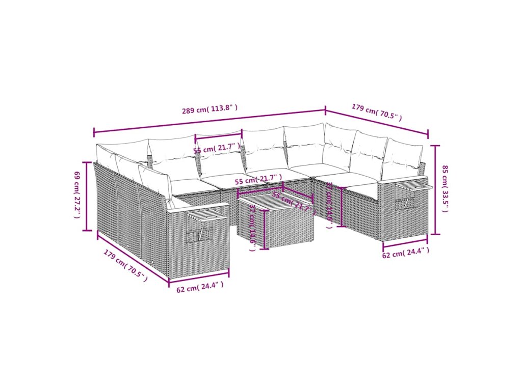 Tato zahradní sedací souprava je dokonalým doplňkem vaší zahrady, terasy nebo dvorku a poskytne vám pohodlné a příjemné místo, kde si můžete povídat s rodinou a přáteli nebo jen tak odpočívat a užívat si pobyt venku.