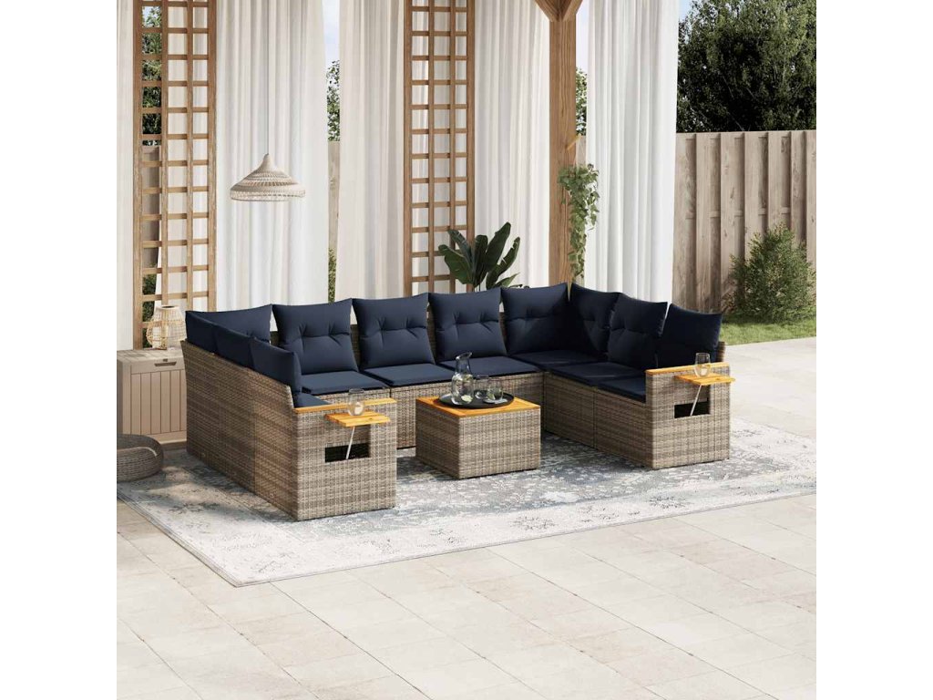 10dílná zahradní sedací souprava s poduškami šedá polyratan 3227125