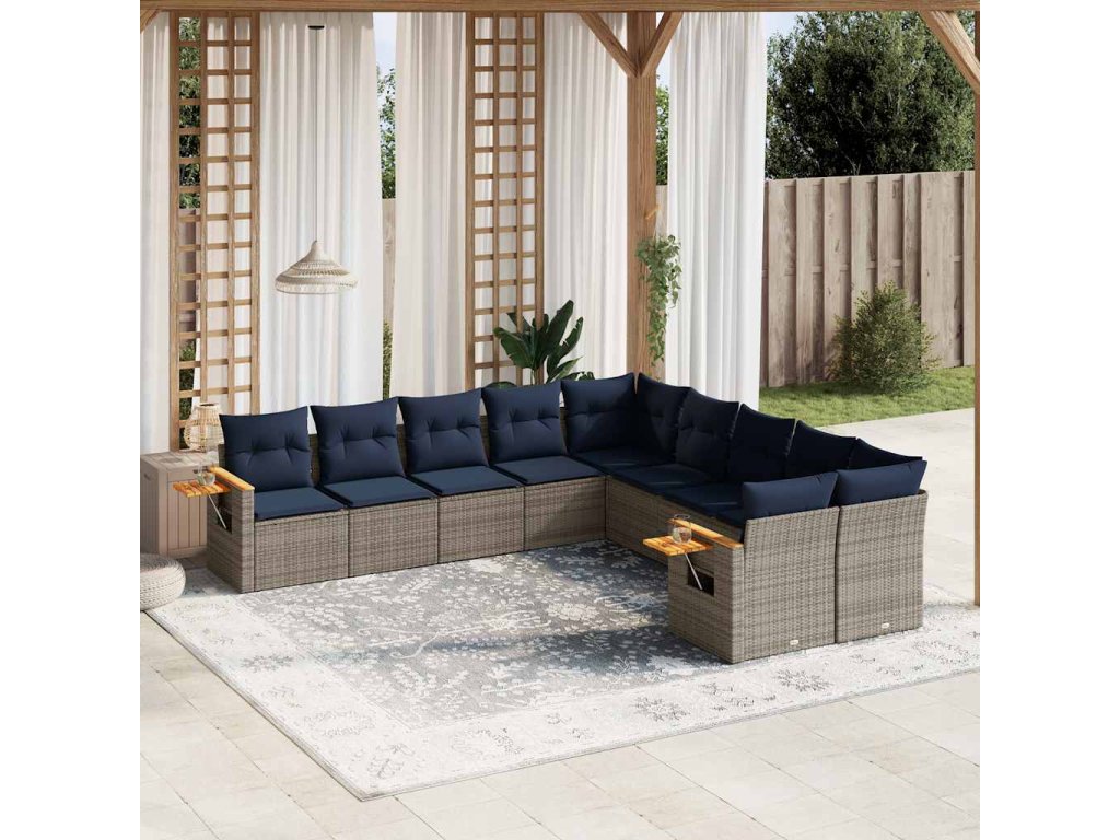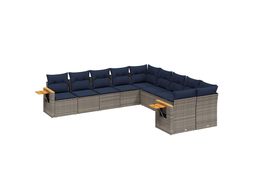 10dílná zahradní sedací souprava s poduškami šedá polyratan 3227195