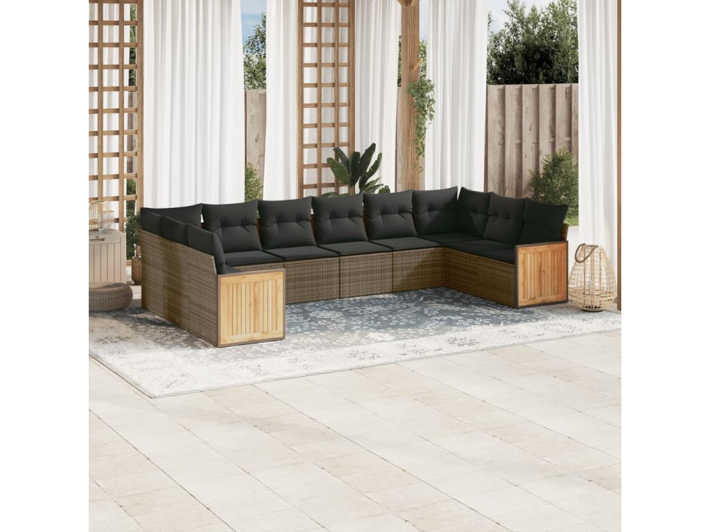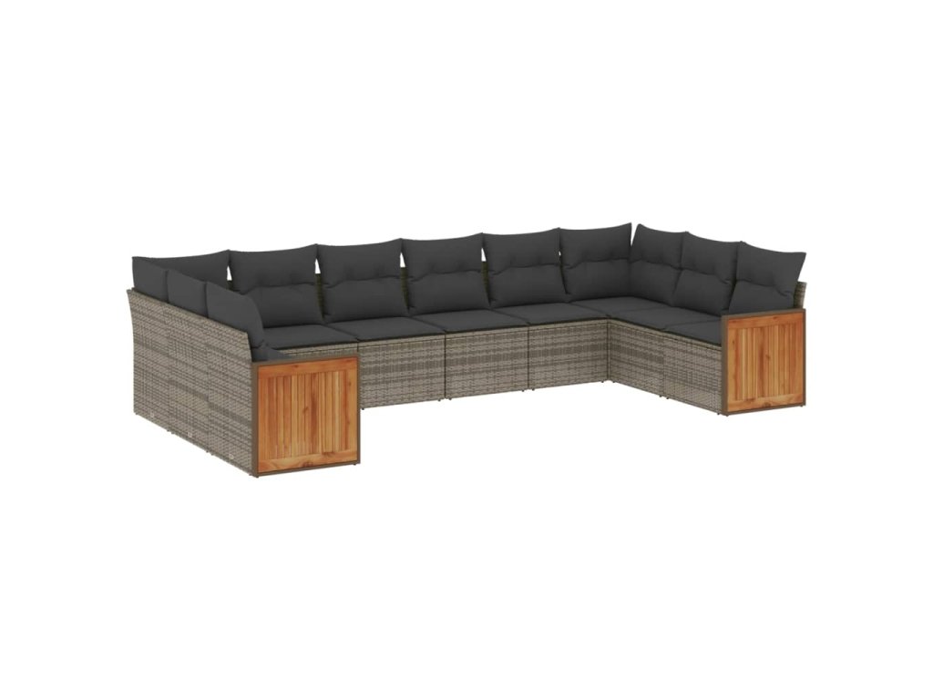 10dílná zahradní sedací souprava s poduškami šedá polyratan 3228006