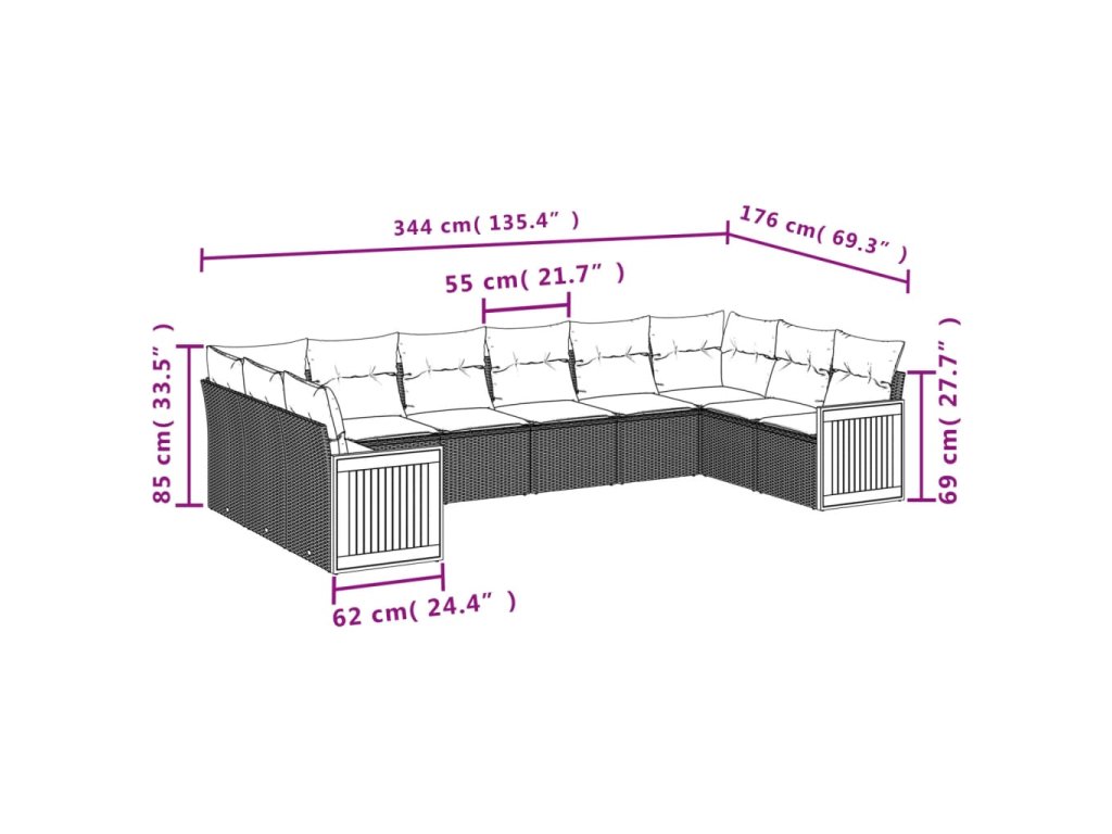 Tato zahradní sedací souprava je dokonalým doplňkem vaší zahrady, terasy nebo dvorku a poskytne vám pohodlné a příjemné místo, kde si můžete povídat s rodinou a přáteli nebo jen tak odpočívat a užívat si pobyt venku.