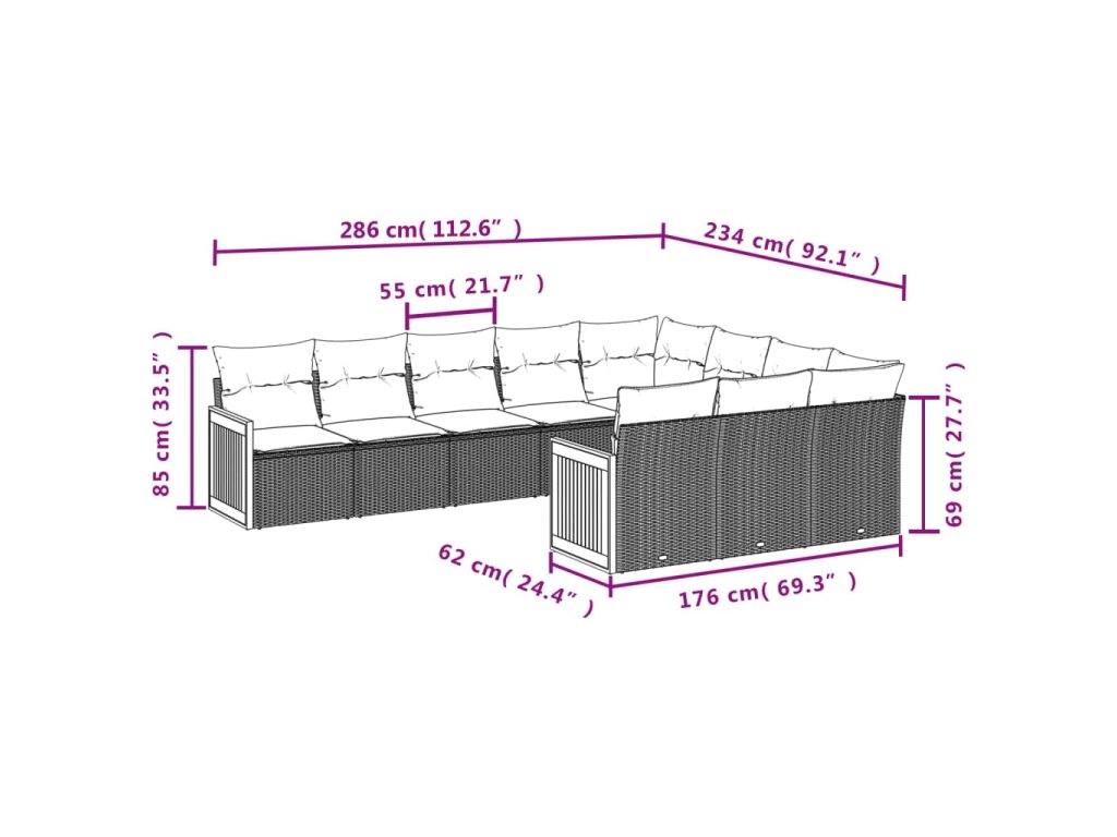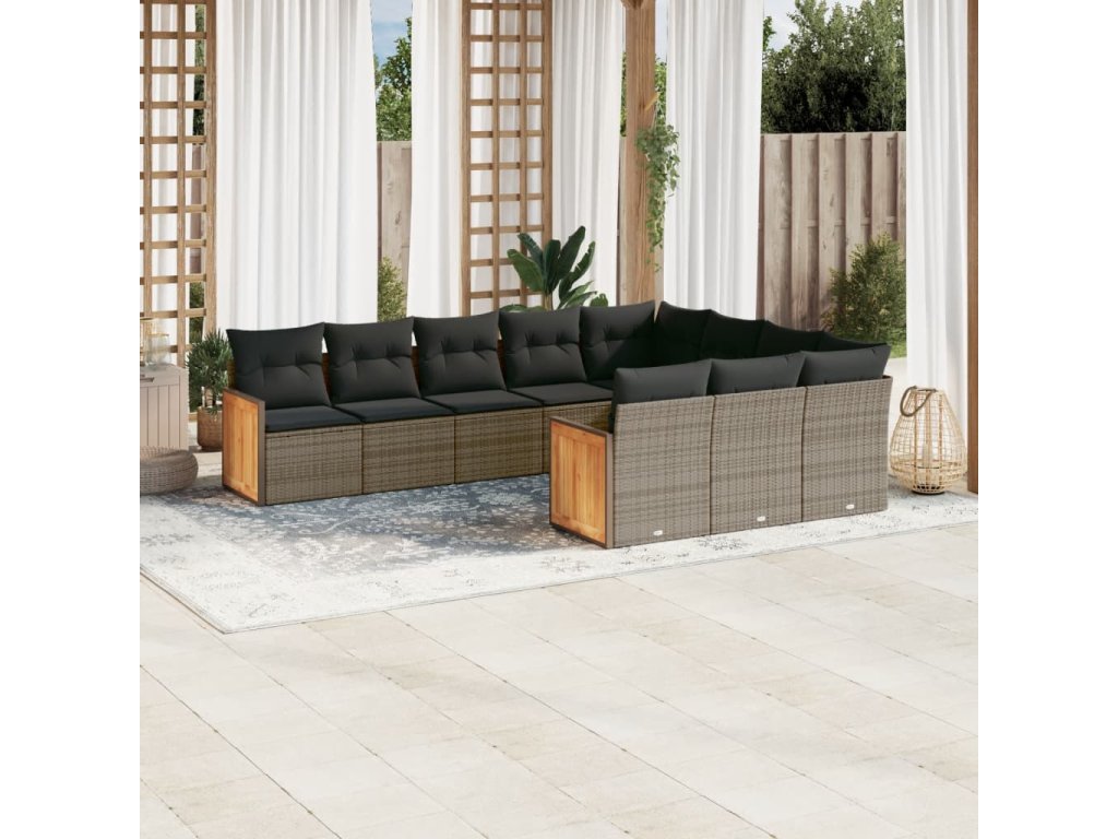 10dílná zahradní sedací souprava s poduškami šedá polyratan 3228020