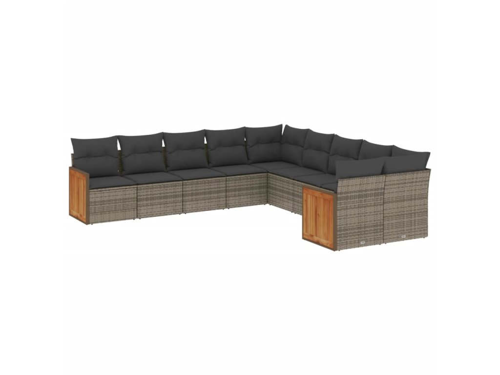10dílná zahradní sedací souprava s poduškami šedá polyratan 3228034