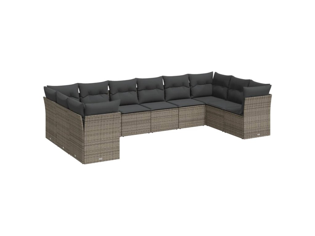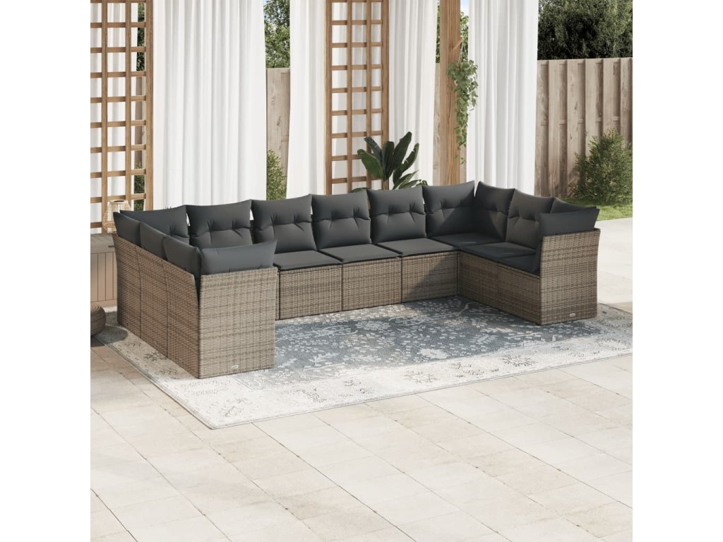 10dílná zahradní sedací souprava s poduškami šedá polyratan 3250039