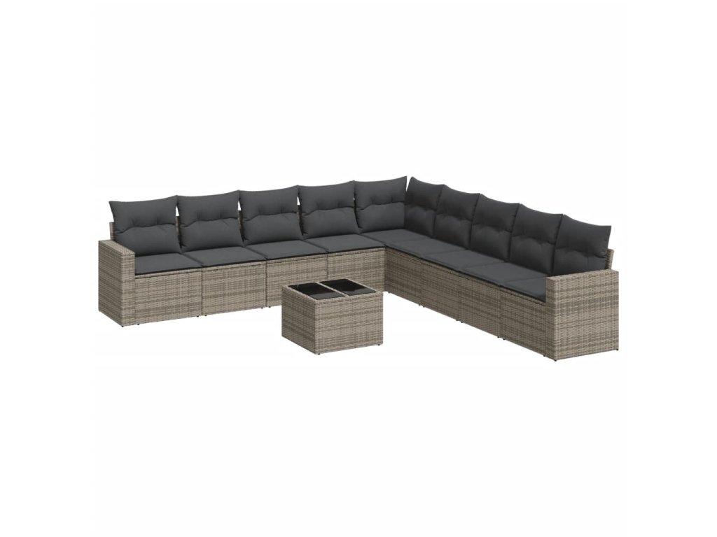 10dílná zahradní sedací souprava s poduškami šedá polyratan 3251437