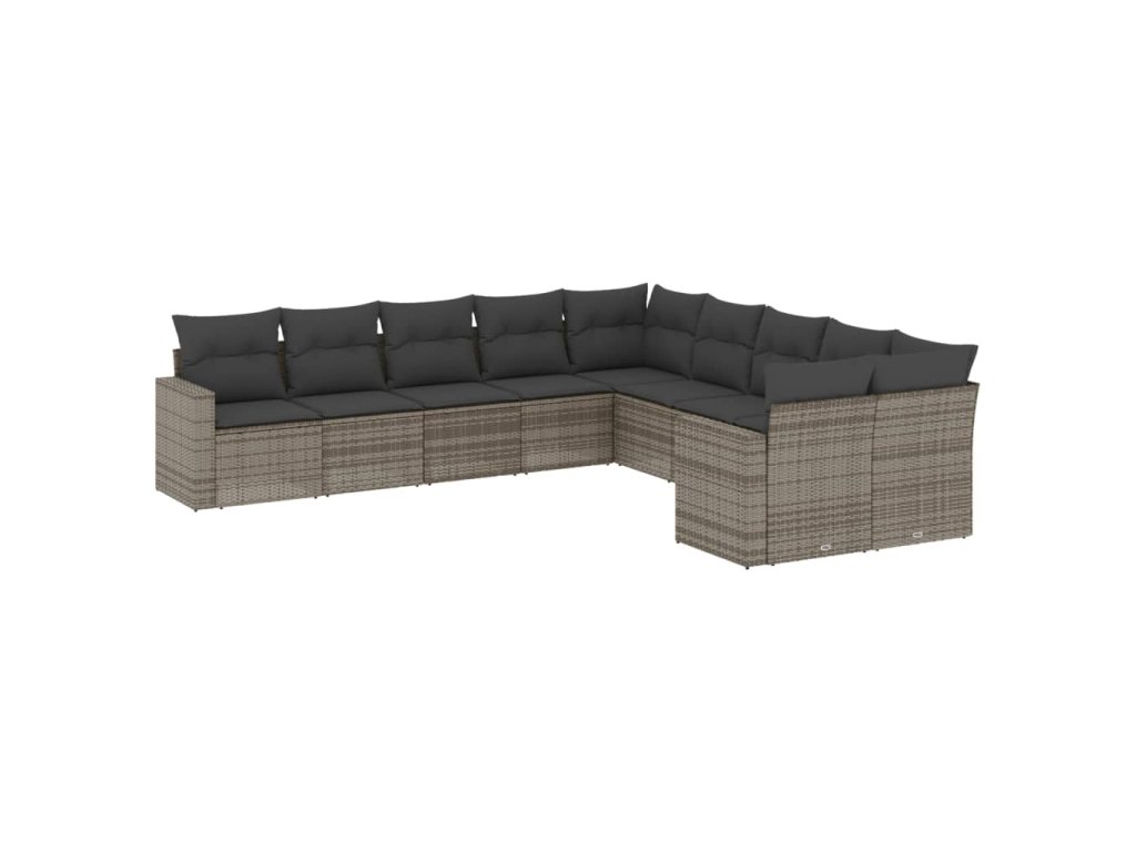 10dílná zahradní sedací souprava s poduškami šedá polyratan 3251847