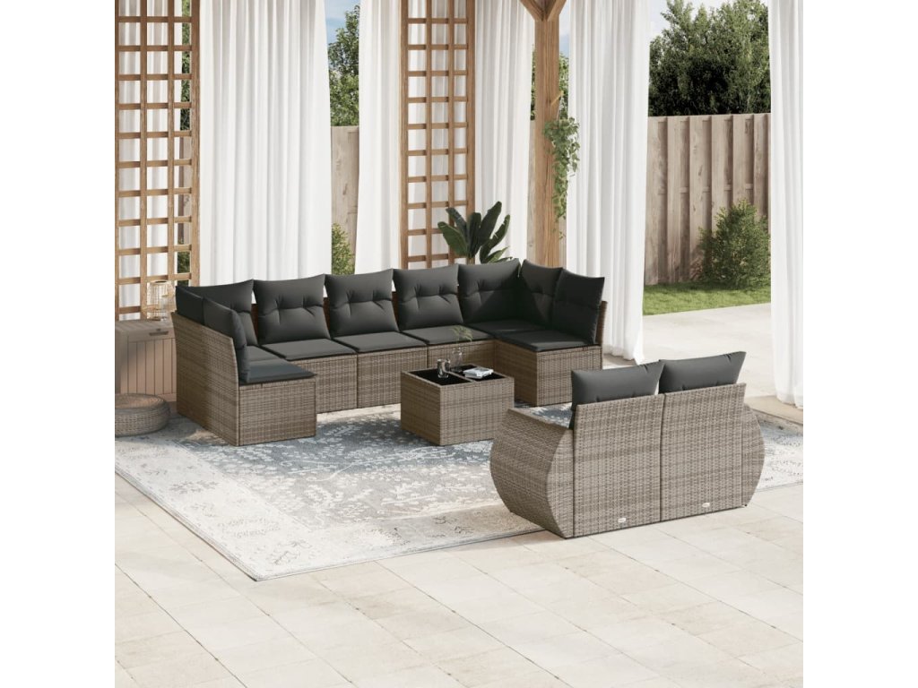 10dílná zahradní sedací souprava s poduškami šedá polyratan 3254167