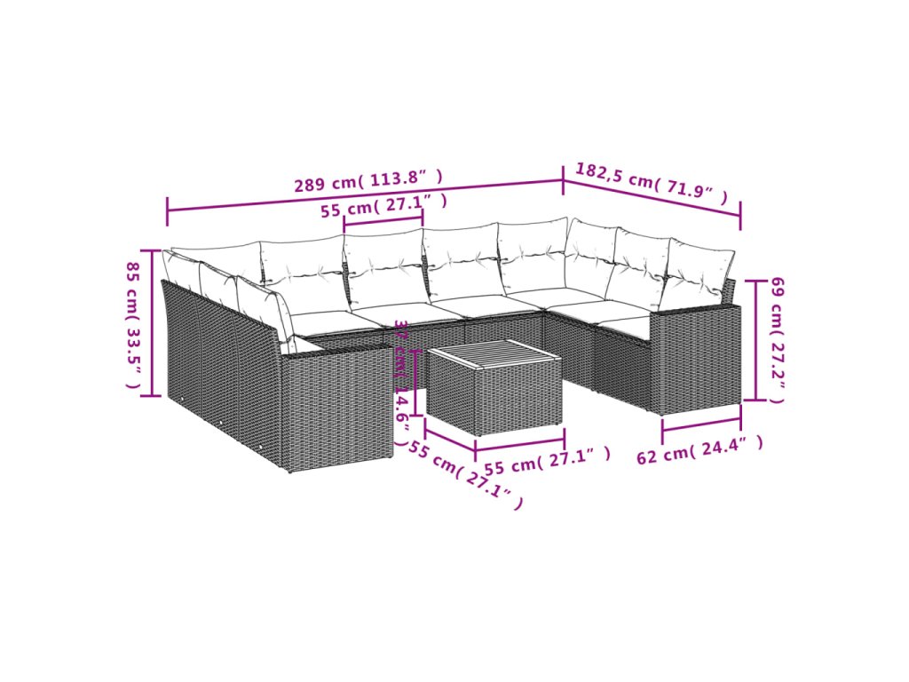 10dílná zahradní sedací souprava s poduškami šedá polyratan 3256599