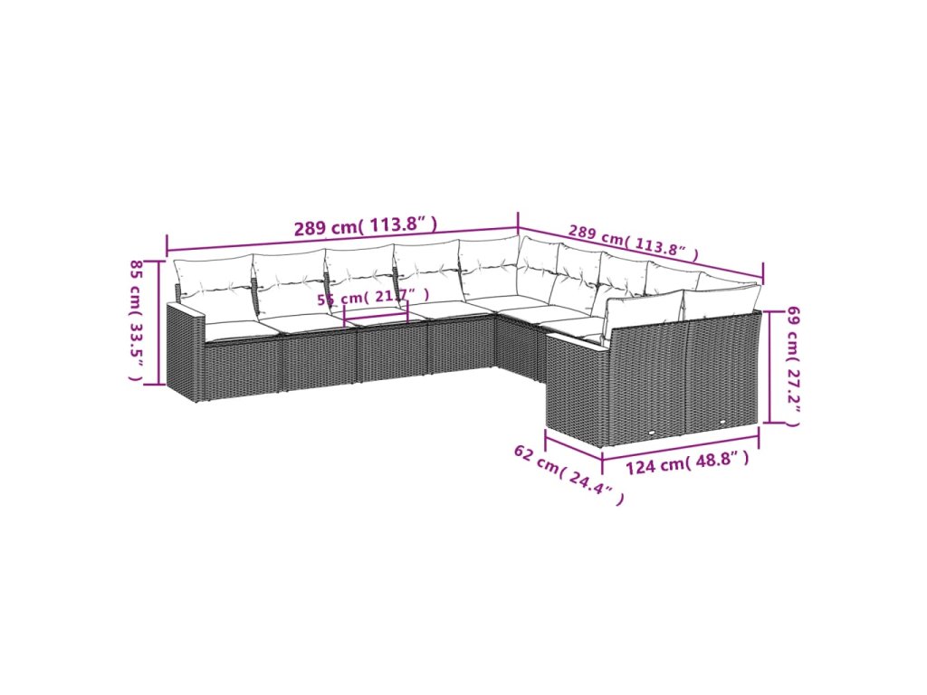 10dílná zahradní sedací souprava s poduškami šedá polyratan 3258756