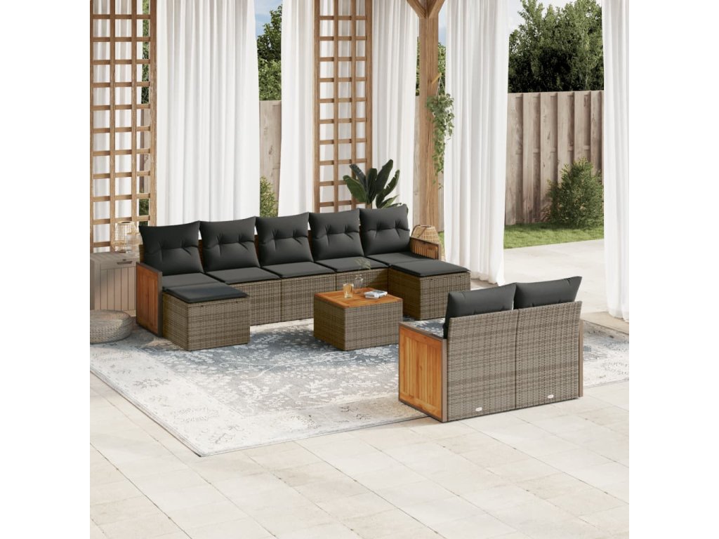 10dílná zahradní sedací souprava s poduškami šedá polyratan 3260492