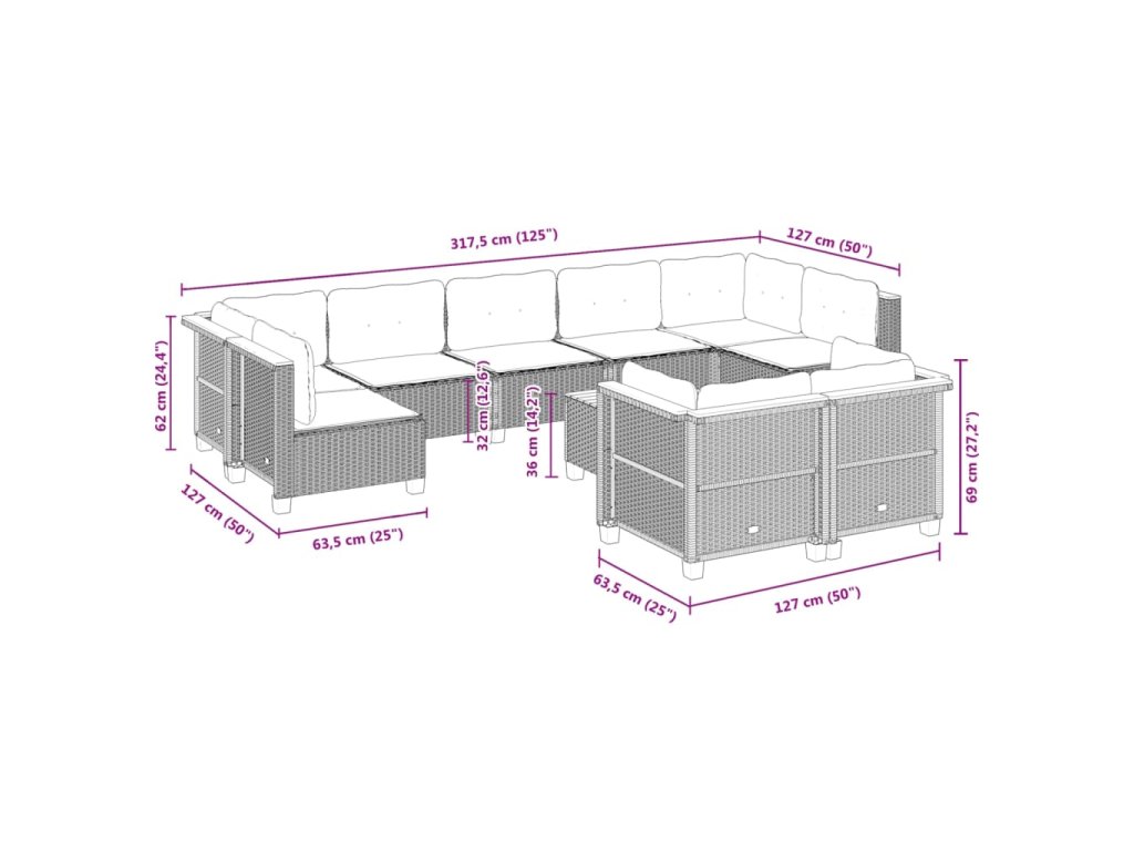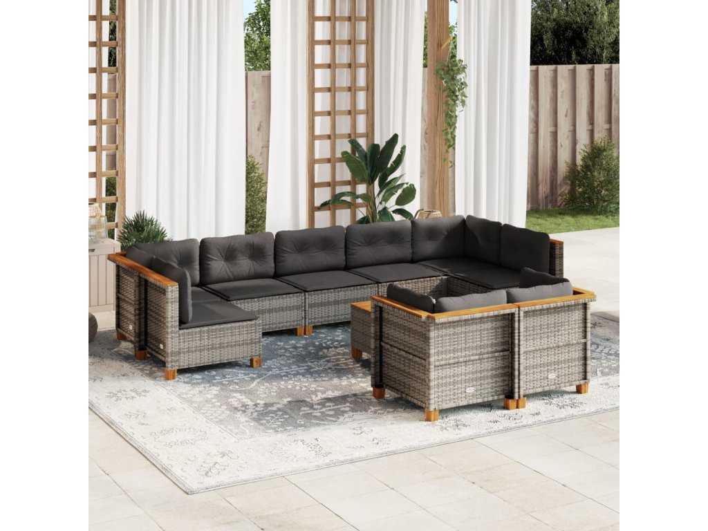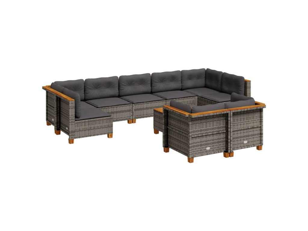 10dílná zahradní sedací souprava s poduškami šedá polyratan 3261996