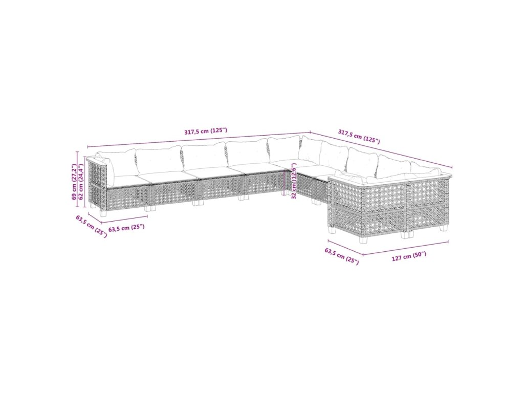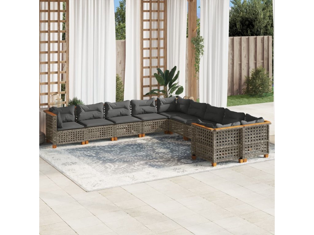 10dílná zahradní sedací souprava s poduškami šedá polyratan 3262047