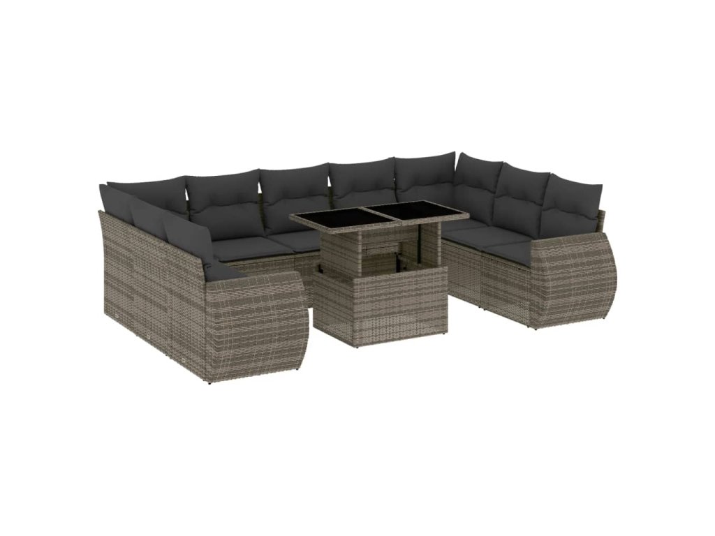 10dílná zahradní sedací souprava s poduškami šedá polyratan 3268740