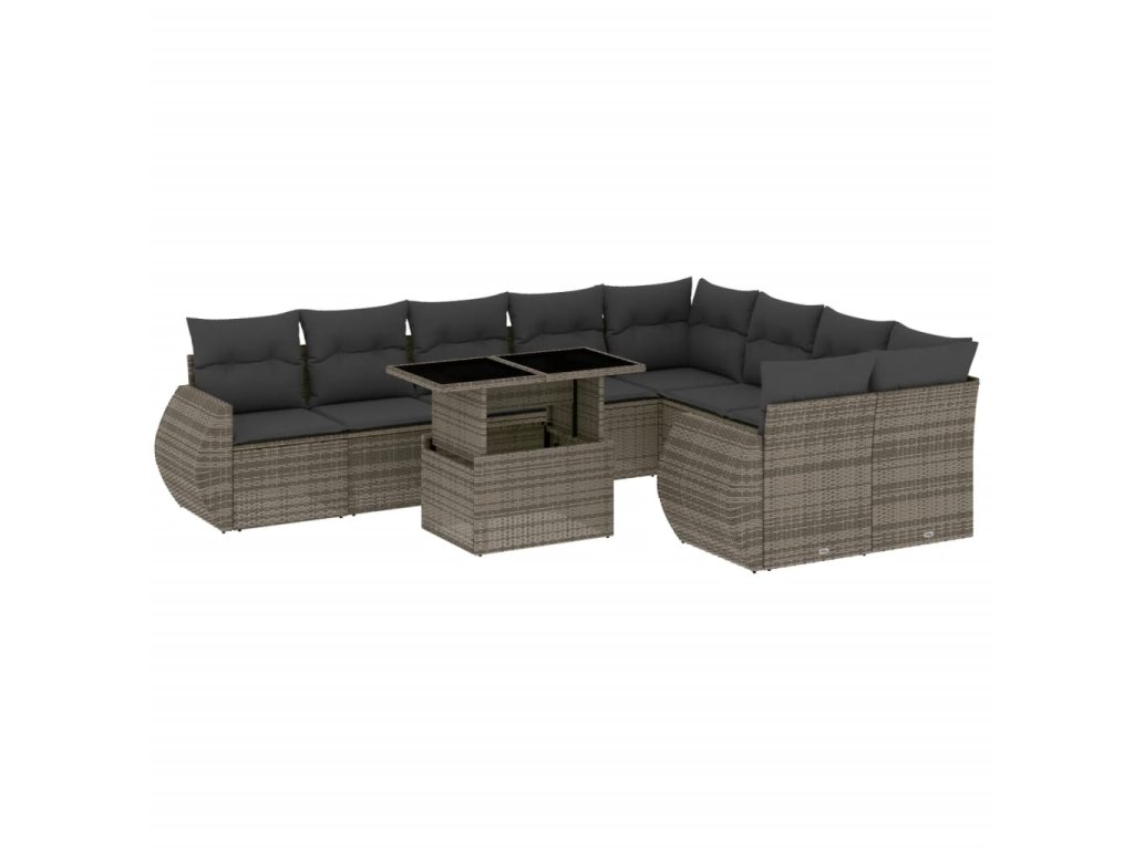 10dílná zahradní sedací souprava s poduškami šedá polyratan 3268760