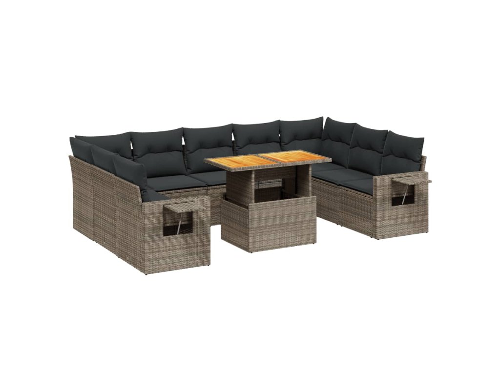 10dílná zahradní sedací souprava s poduškami šedá polyratan 3271900