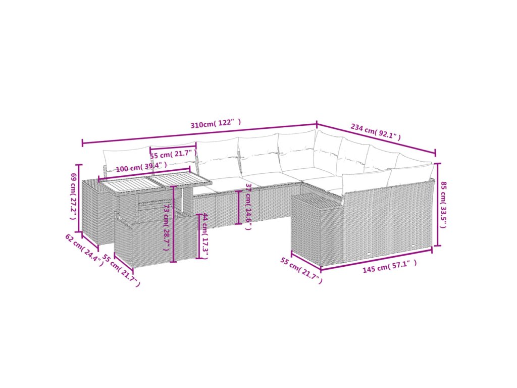 Tato zahradní sedací souprava je dokonalým doplňkem vaší zahrady, terasy nebo dvorku a poskytne vám pohodlné a příjemné místo, kde si můžete povídat s rodinou a přáteli nebo jen tak odpočívat a užívat si pobyt venku.