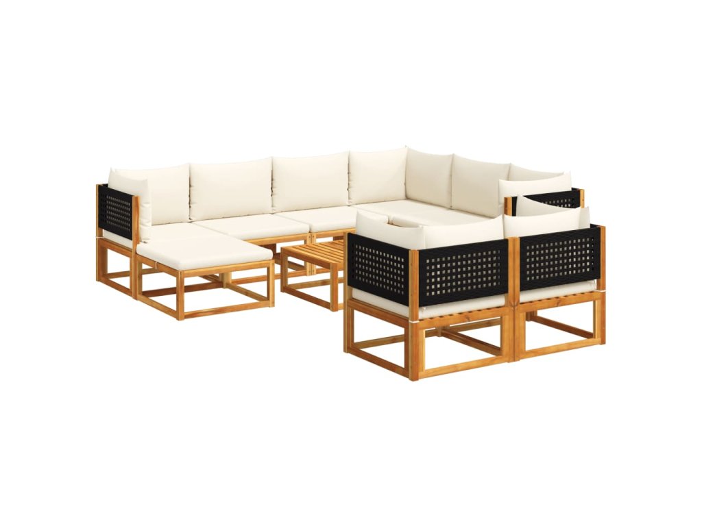 10dílná zahradní sedací souprava s polštáři, akácie a ratan 3278882
