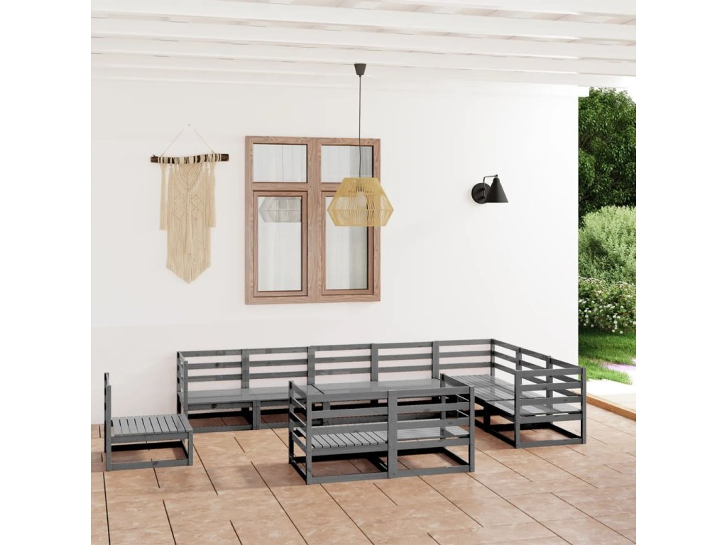 10dílná zahradní sedací souprava šedá masivní borovice 3075816