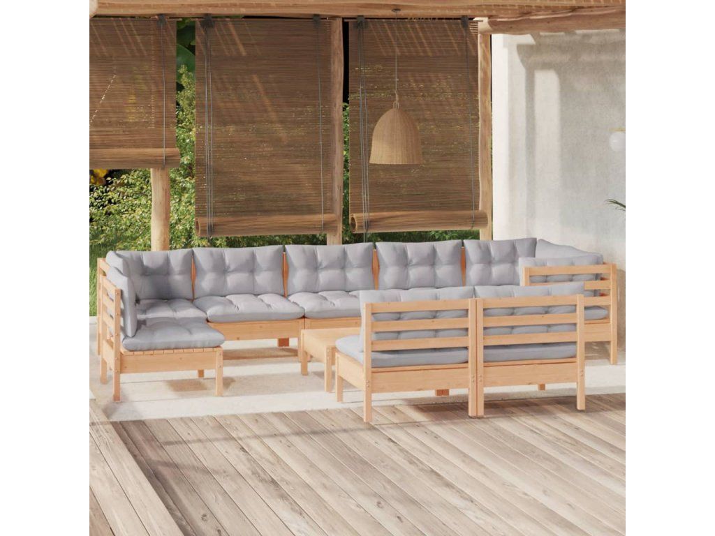 10dílná zahradní sedací souprava šedé podušky masivní borovice 3096483